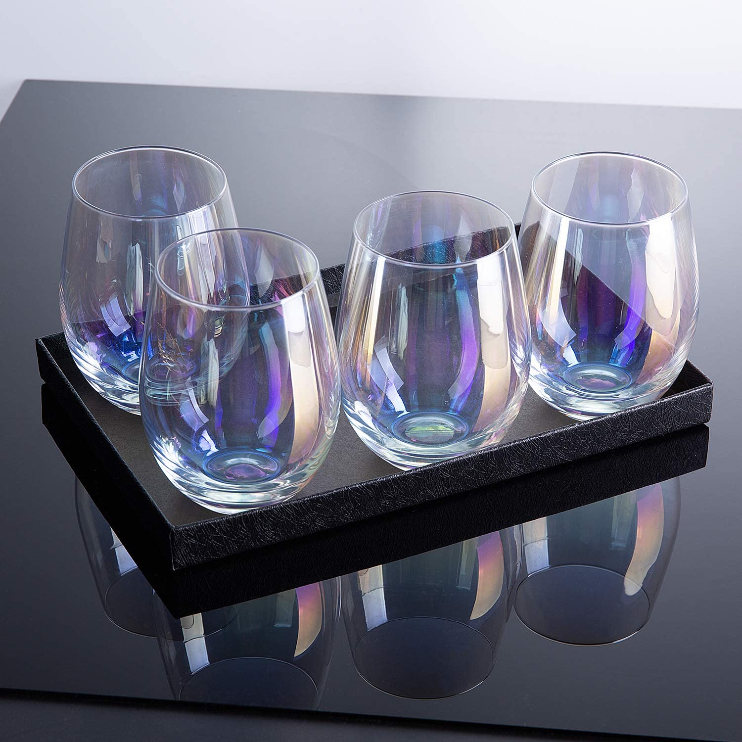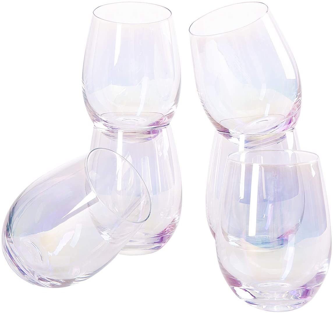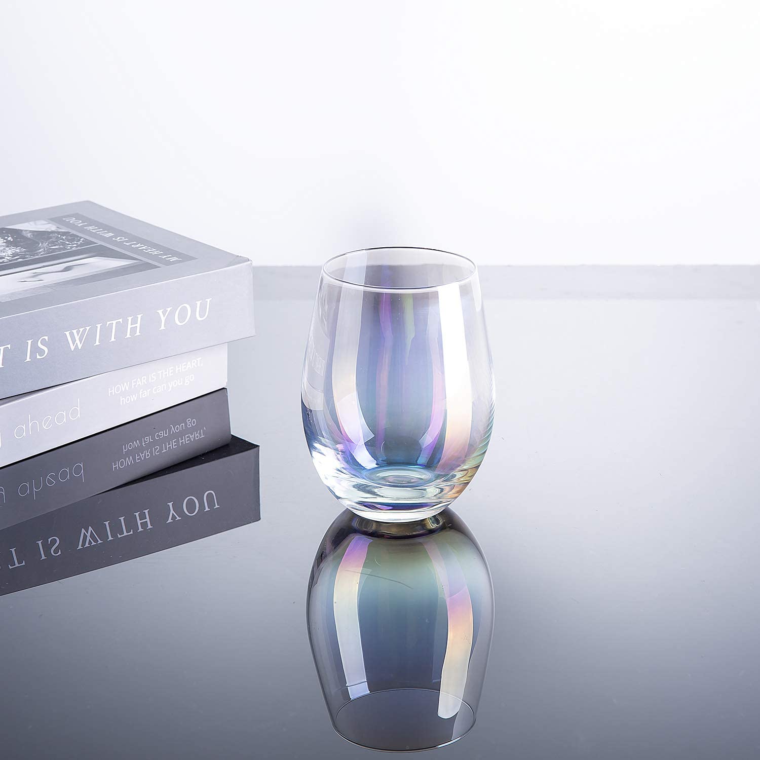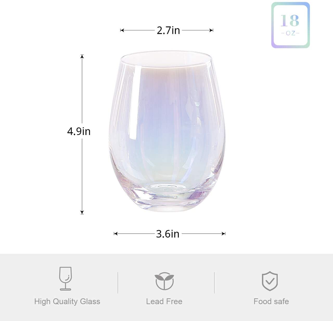 18 Ounce Iridescent Stemless Wine Glass Bell Shape for Water Beverage Wine,Beer and Home Bar Collection Set of 6 (iridescent)