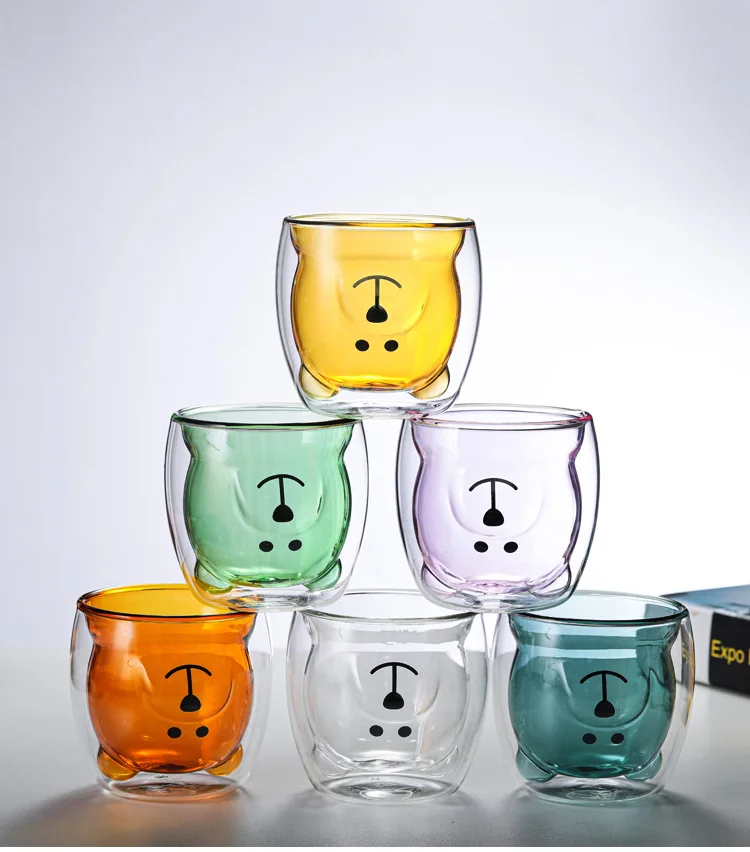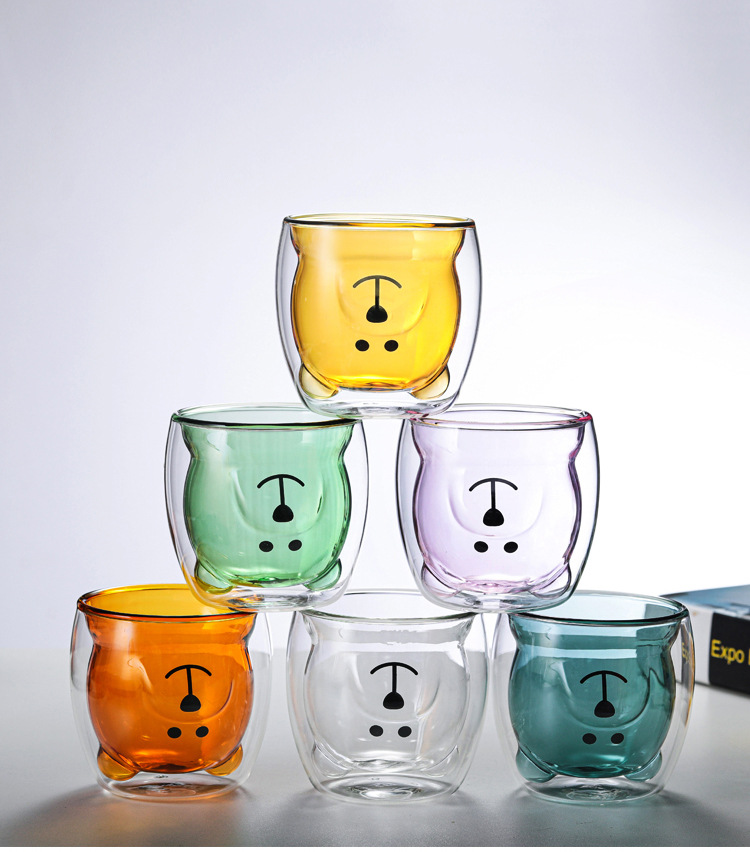 Item Name. | 250ml water glass drinking bear glass cup with spray color double layer glass cup |