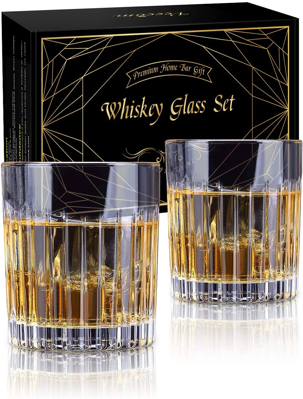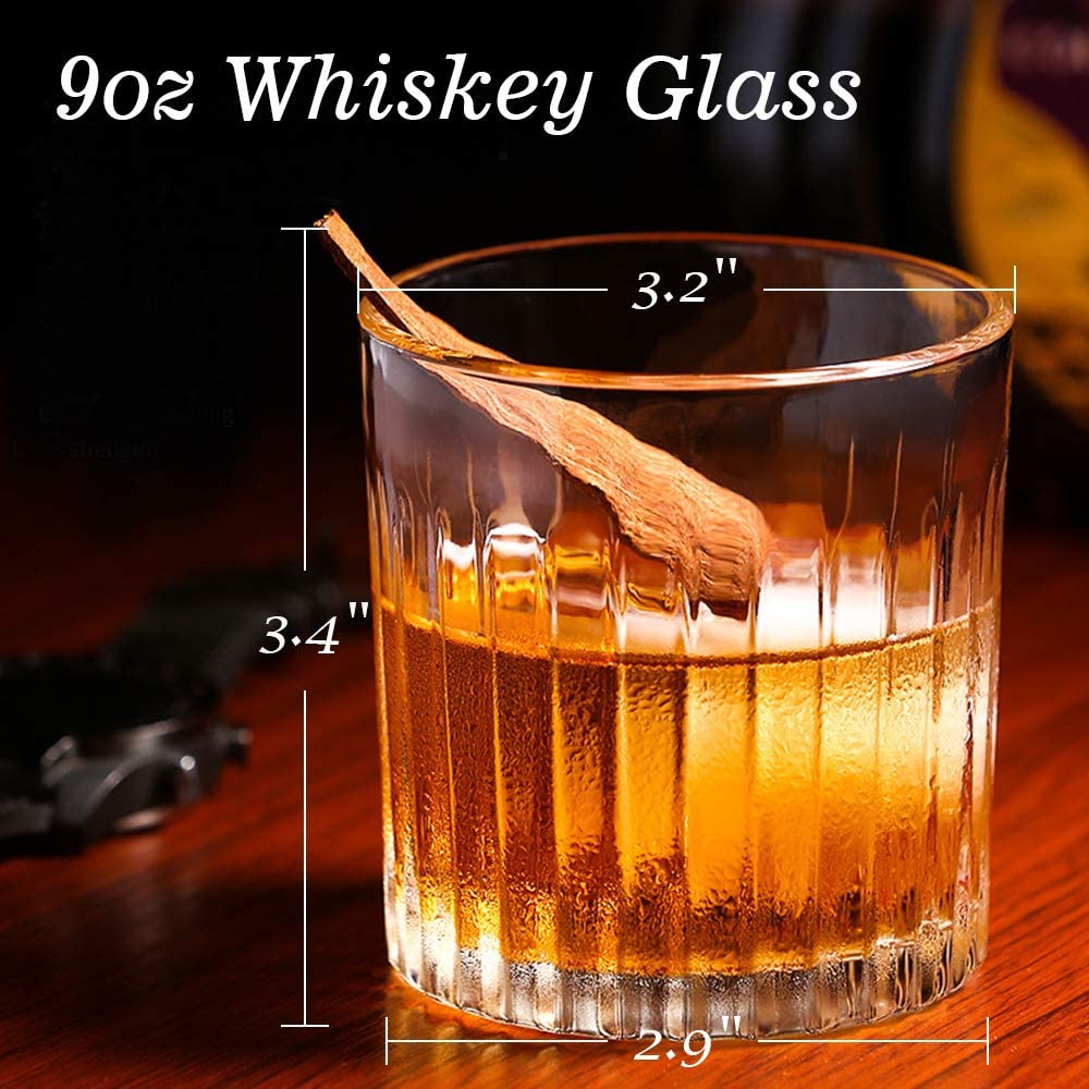 9 Oz Glasses Set of 2, Old Fashioned Whiskey Glass, Lead-free Bar Rocks Glasses Whiskey Glass