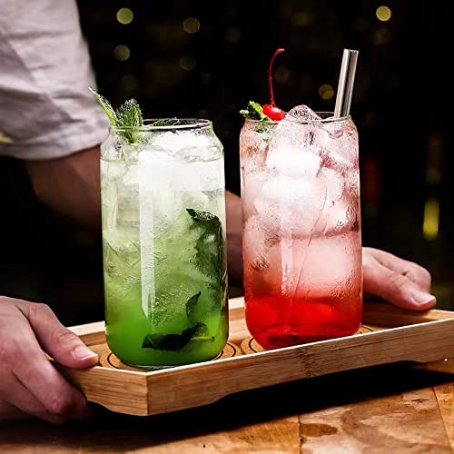 Beer Can Glass with Lids and Straw, Iced Coffee Cup Can Shaped Glass 20oz Drinking Glasses with Lid