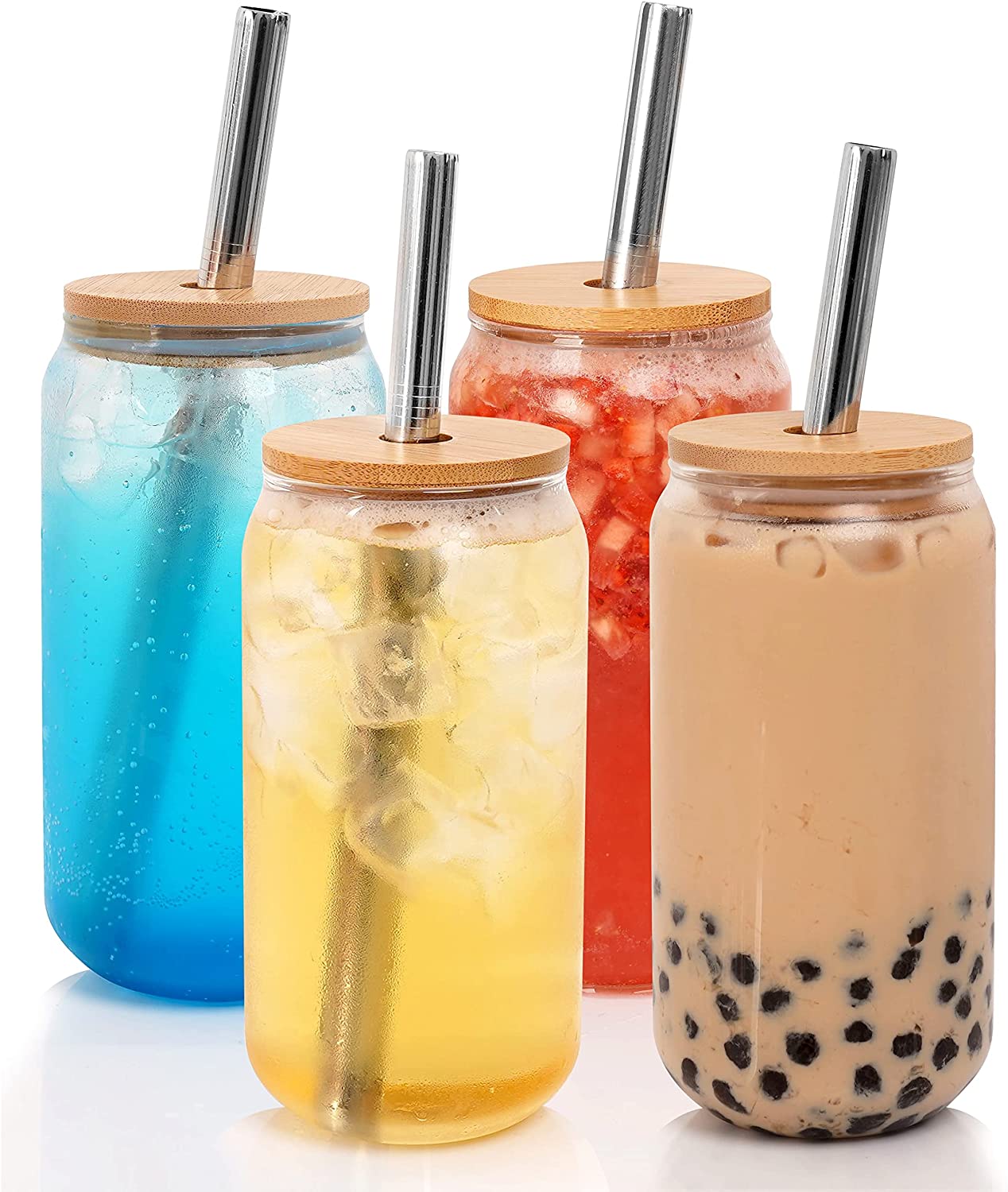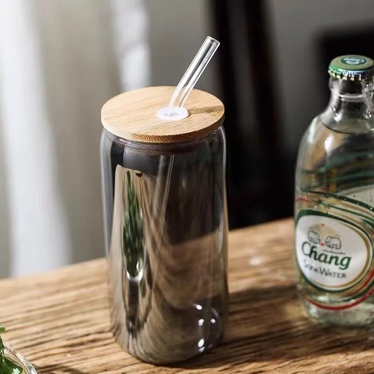 Item Name. | Beer Can Glass with Lids and Straw, Iced Coffee Cup Can Shaped Glass 20oz Drinking Glasses with Lid |