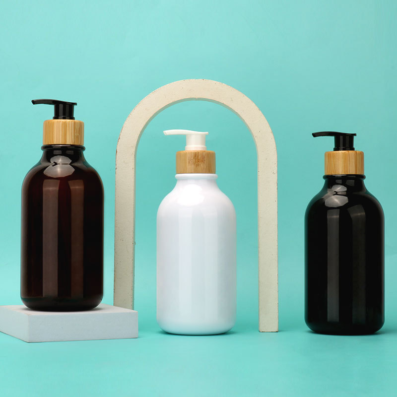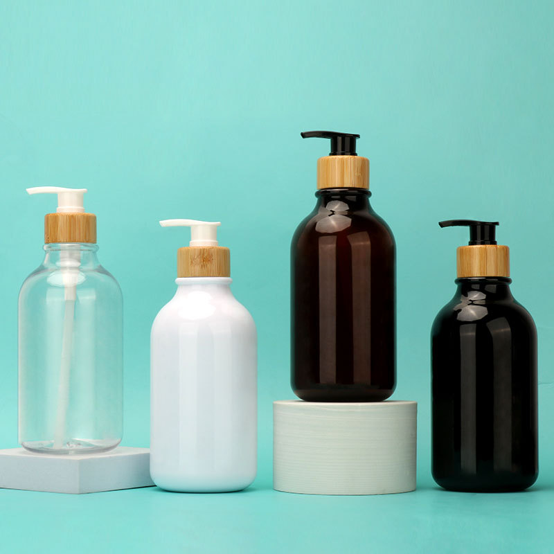 custom labels plastic soap pump bottle soap dispenser bottle liquid soap bottle with bamboo holder