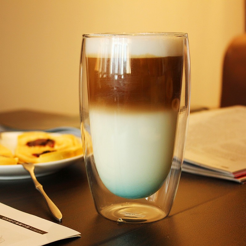Double Wall Drinking Glass Cup for Travel Portable Coffee Tea Milk Cup with Silicone Base Cups & Saucers Bulk Safe Packing 350ml
