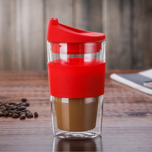Double Wall Glass Coffee Cup With Lid and Silicone Thermo Insulated Borosilicate Tumbler Glass Coffee Cup With Lid