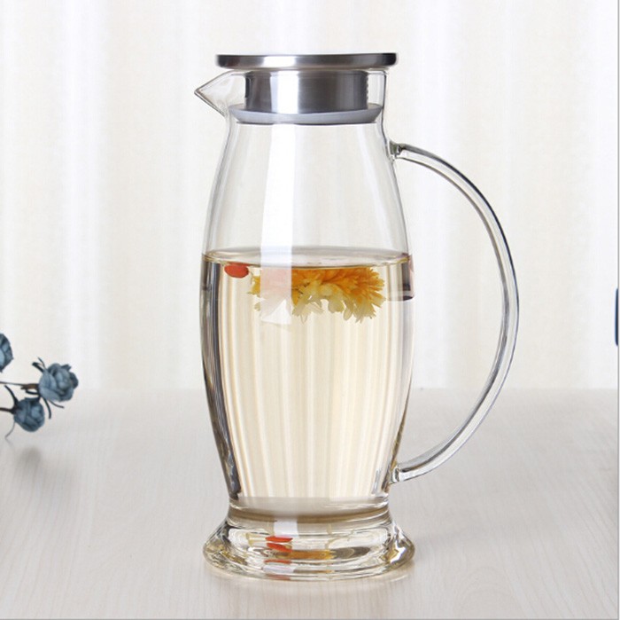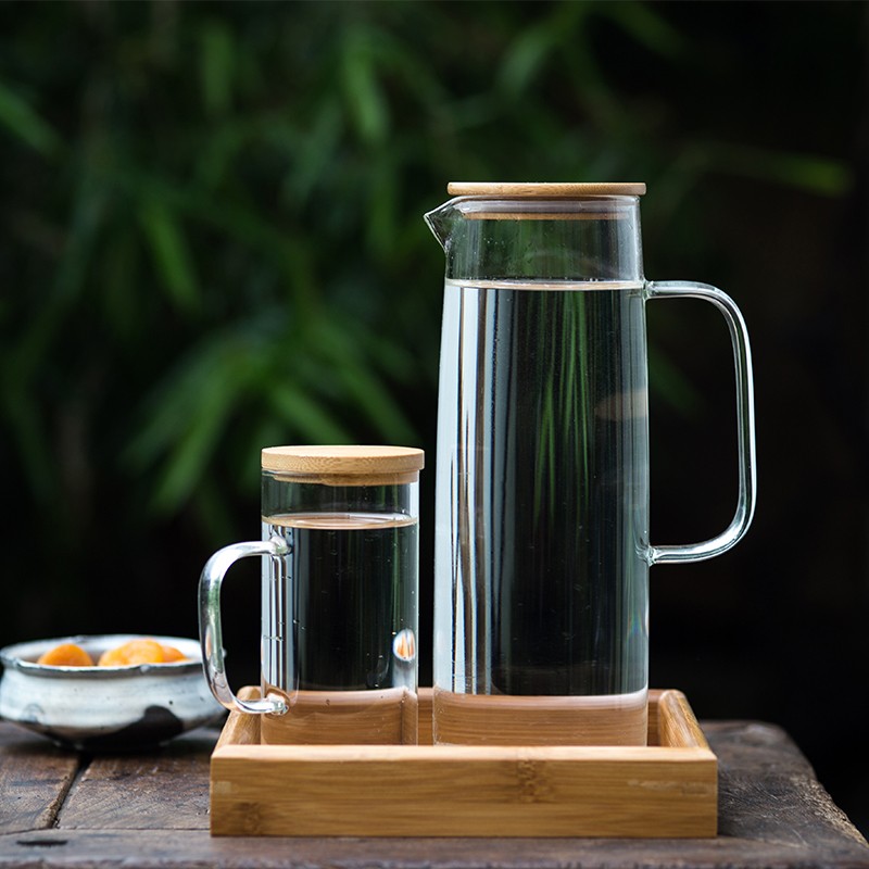 Model Number: | MM-063 | porduction name: | Heat resistant Glass Pitcher with bamboo Lid |