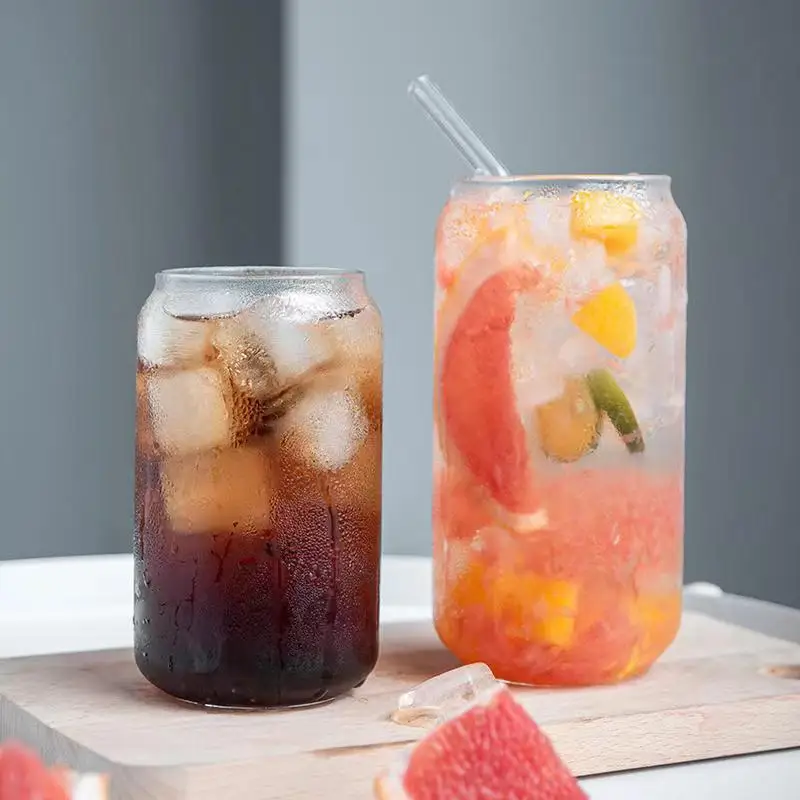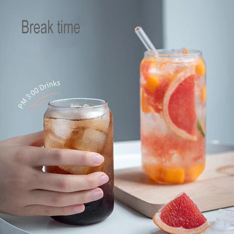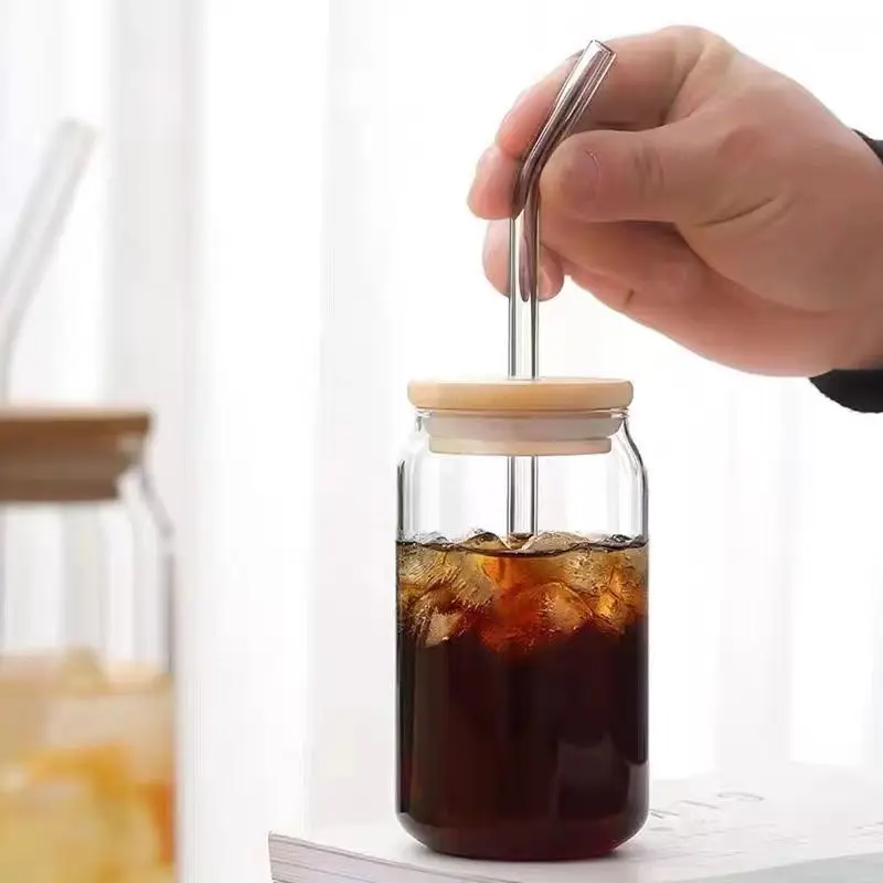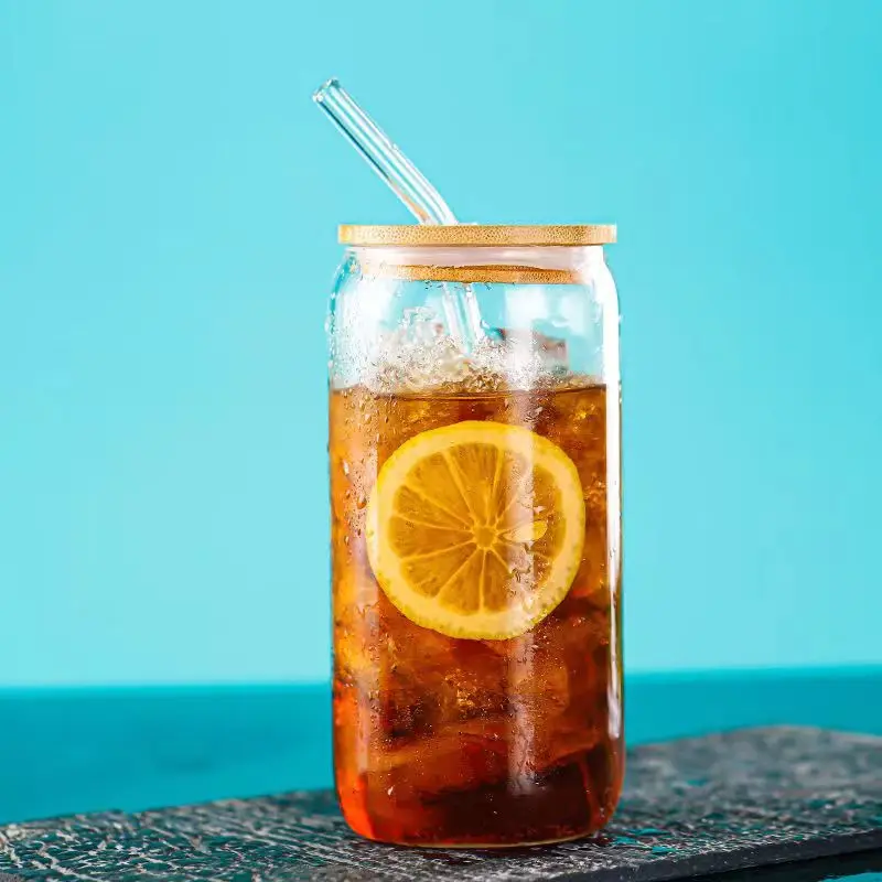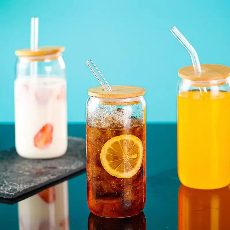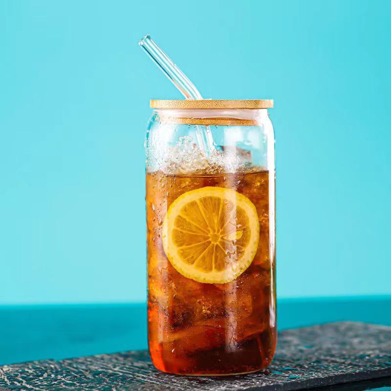 Item | Hot Selling Can Shape Beer Glass with Bamboo Lid and Straw Glass Cup For Drinking |