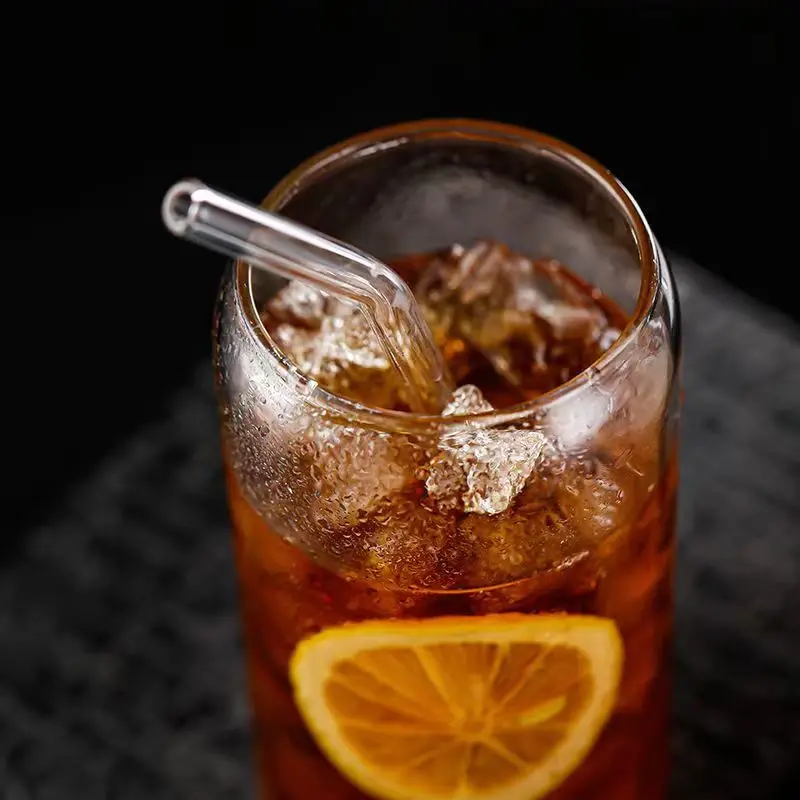 Hot Selling Can Shape Beer Glass with Bamboo Lid and Straw Glass Cup For Drinking