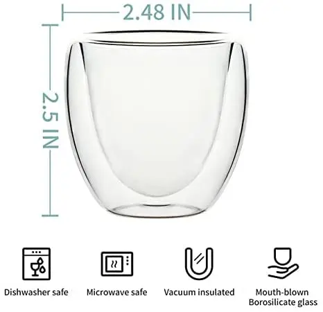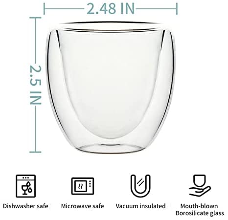 Insulated Double Wall Glasses Espresso Cups Tea Cups, Shot Glasses and Tumbler Cups 2.8oz/80ml