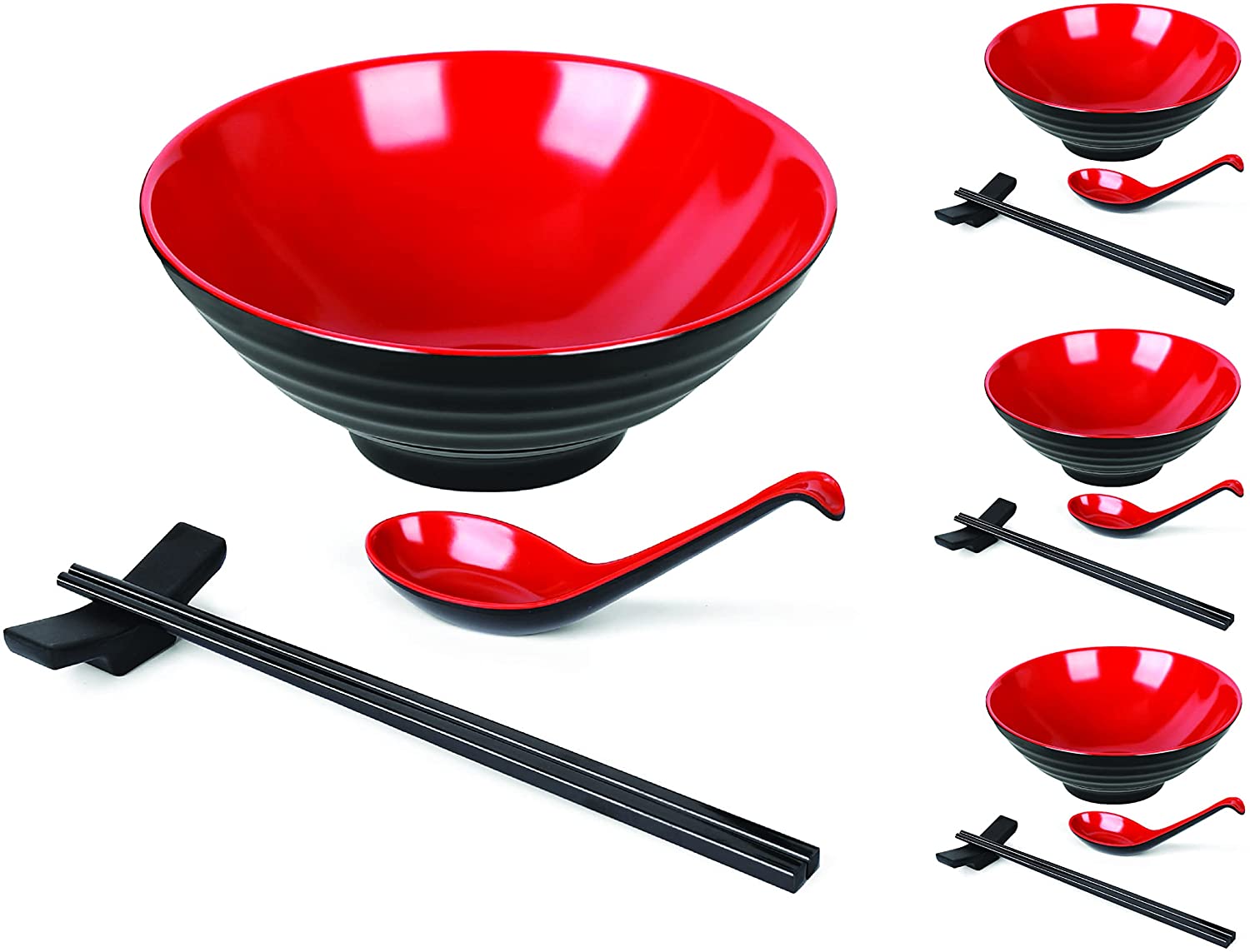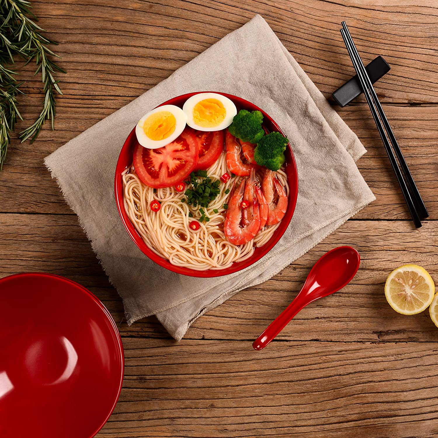 Kitchen 16 PC Restaurant Quality 33oz. Large Melamine Ramen Bowls and Spoons Set Complete Dinnerware Set |
