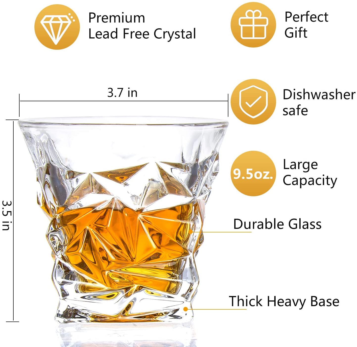 Lighten Life Whiskey Glasses, Set of 4 Rock Glass,Premium Old Fashioned Glass Glasses Tumblers