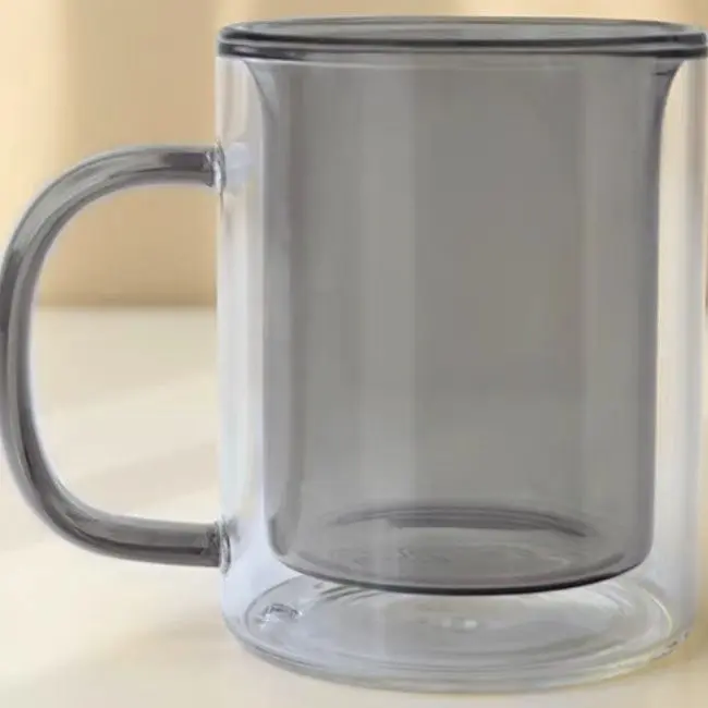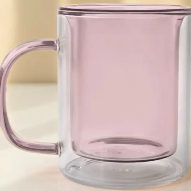 Solid Color Double Wall Coffee Tea Mug Heat Resistance Microwave Safe Borosilicate Glass Cup