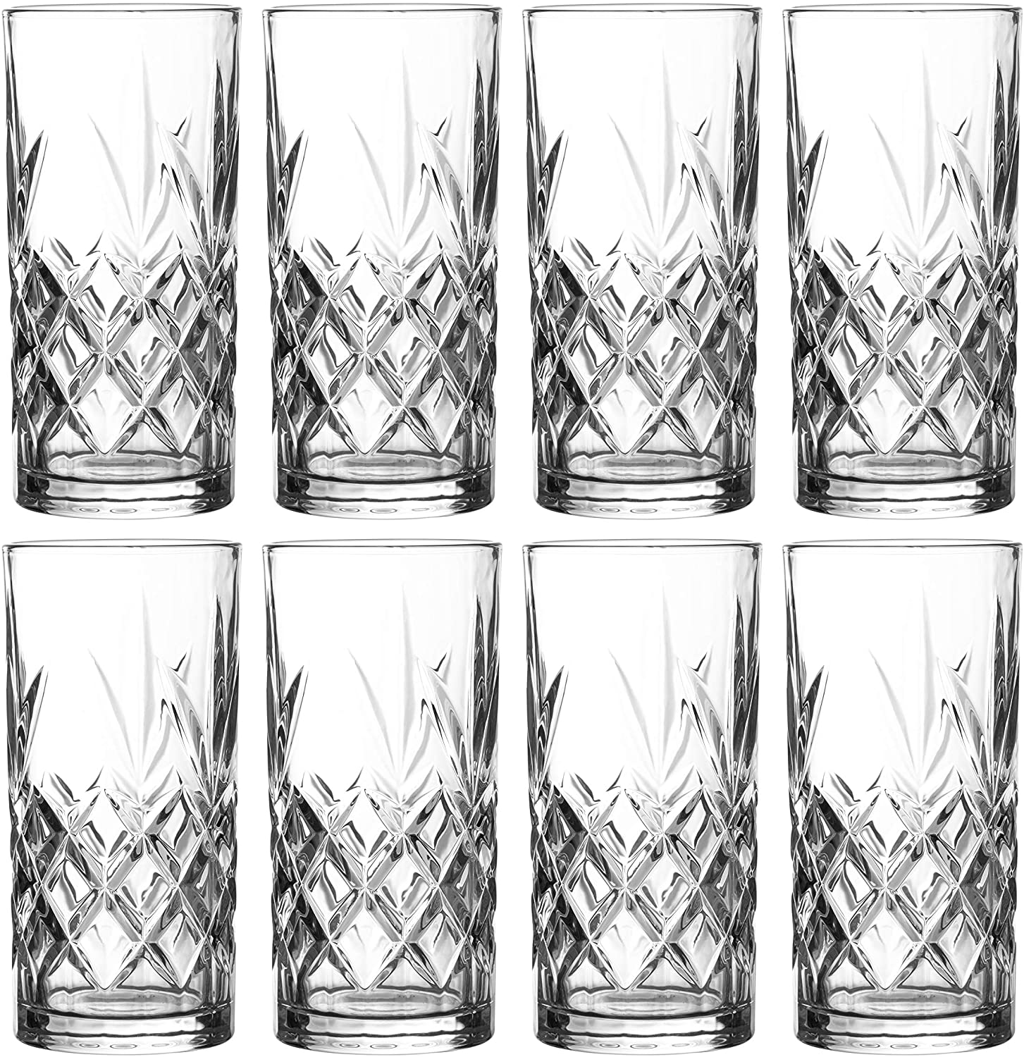 Tall Highball Glasses 12 Ounce Cups Textured Designer Glassware for Drinking Water