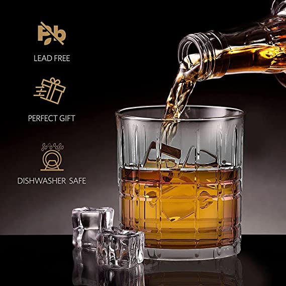 Whiskey Glasses Set of 6 Old Fashioned Glass Cups 12oz Barware Glasses Rocks Glassware Set for Whiskey