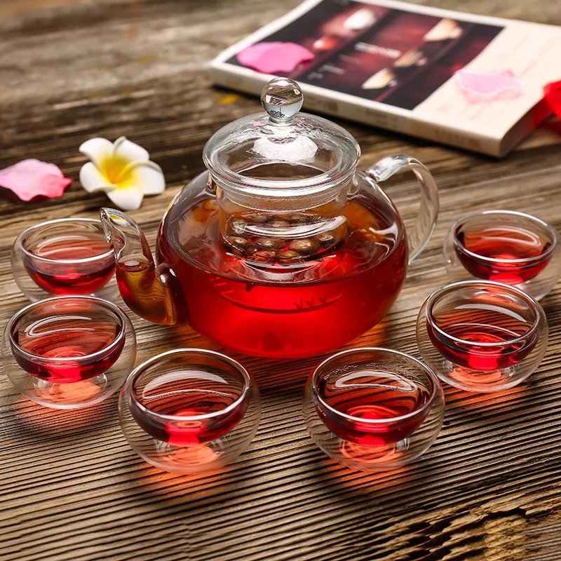 Wholesale Borosilicate Glass Teapot with glass cup, Glass Teapot kettle with Infuser