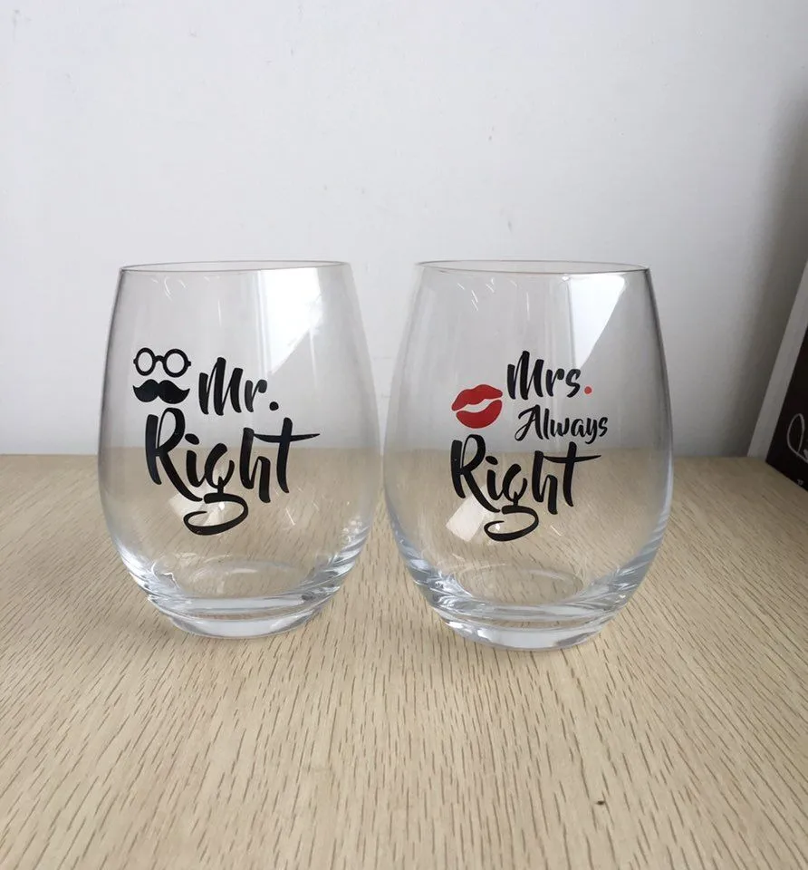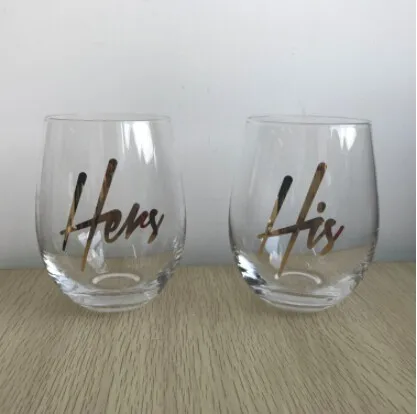 Item name | His&Hers Crystal Stemless Wine Glasses Set with Gold Logo,crystal wedding gift set. |