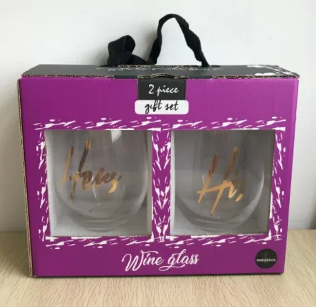 His&Hers Crystal Stemless Wine Glasses Set with Gold Logo,crystal wedding gift set.