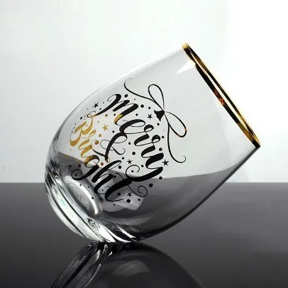 Wholesale Custom His&Hers Crystal Stemless Wine Glasses Set with Gold Logo