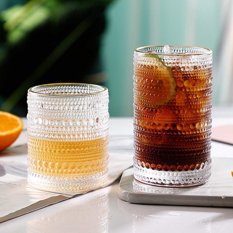 Wholesale Ins hot sale Whiskey Glass Transparent Glass Home Bar Restaurant Retro Embossed Juice Drink Cup