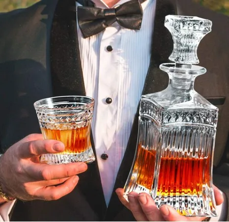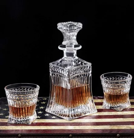 Wholesale Non-Lead Whiskey bottle Whiskey Decanter set with 4 Whiskey Glass Cups
